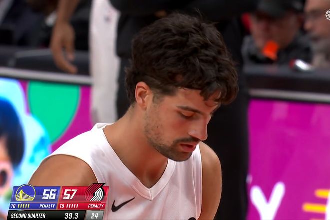 次节,霍福德命中三分,格兰特三分也进,夏普外线续上,建立两位数领先优势。还剩八分多钟,杨瀚森再次登场。夏普冲击篮筐打进还造成犯规,库明加面对杨瀚森打进2+1,随后杨瀚森冲击篮筐上篮打进。还剩四分钟,杨瀚森被换下休息。作为新秀板凳有限,几场比赛都是坐地板休息。波杰姆斯基、理查德连续三分打进,两队分差越来越小。主队失误越来越多。波杰姆斯基领到技术犯规,库明加挥拳向裁判惨遭驱逐。