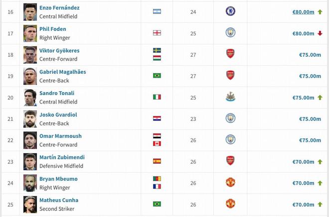 英超身价变更:维尔茨降至1.3亿欧,萨卡降至1.4亿欧,凯塞多升至1亿欧